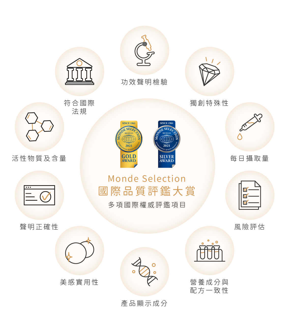 連續2年榮獲 2022&2021 Monde Selection 國際品質評鑑金獎、銀獎