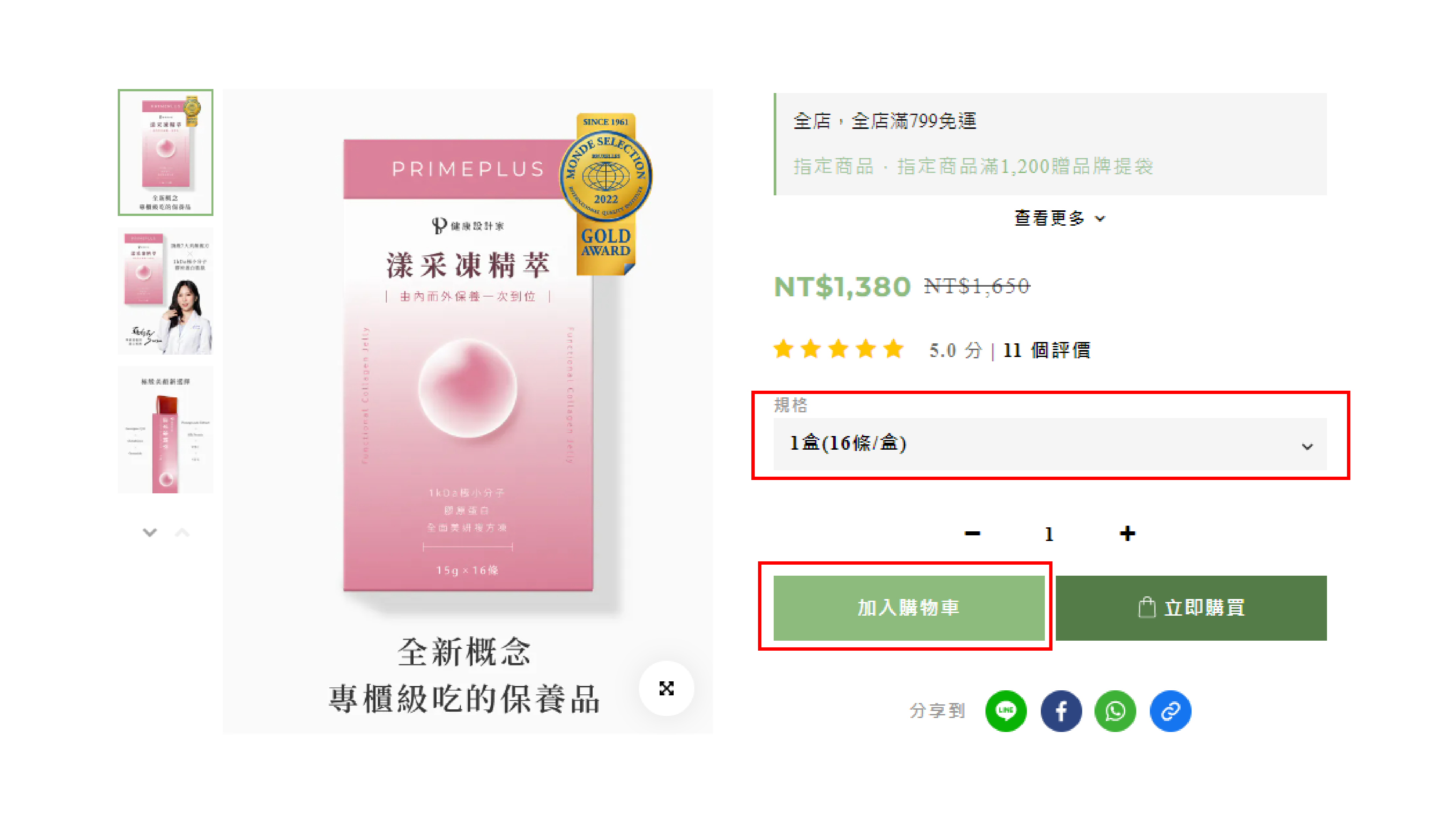 進入商品頁面後,選擇購買數量並點選「加入購物車」。