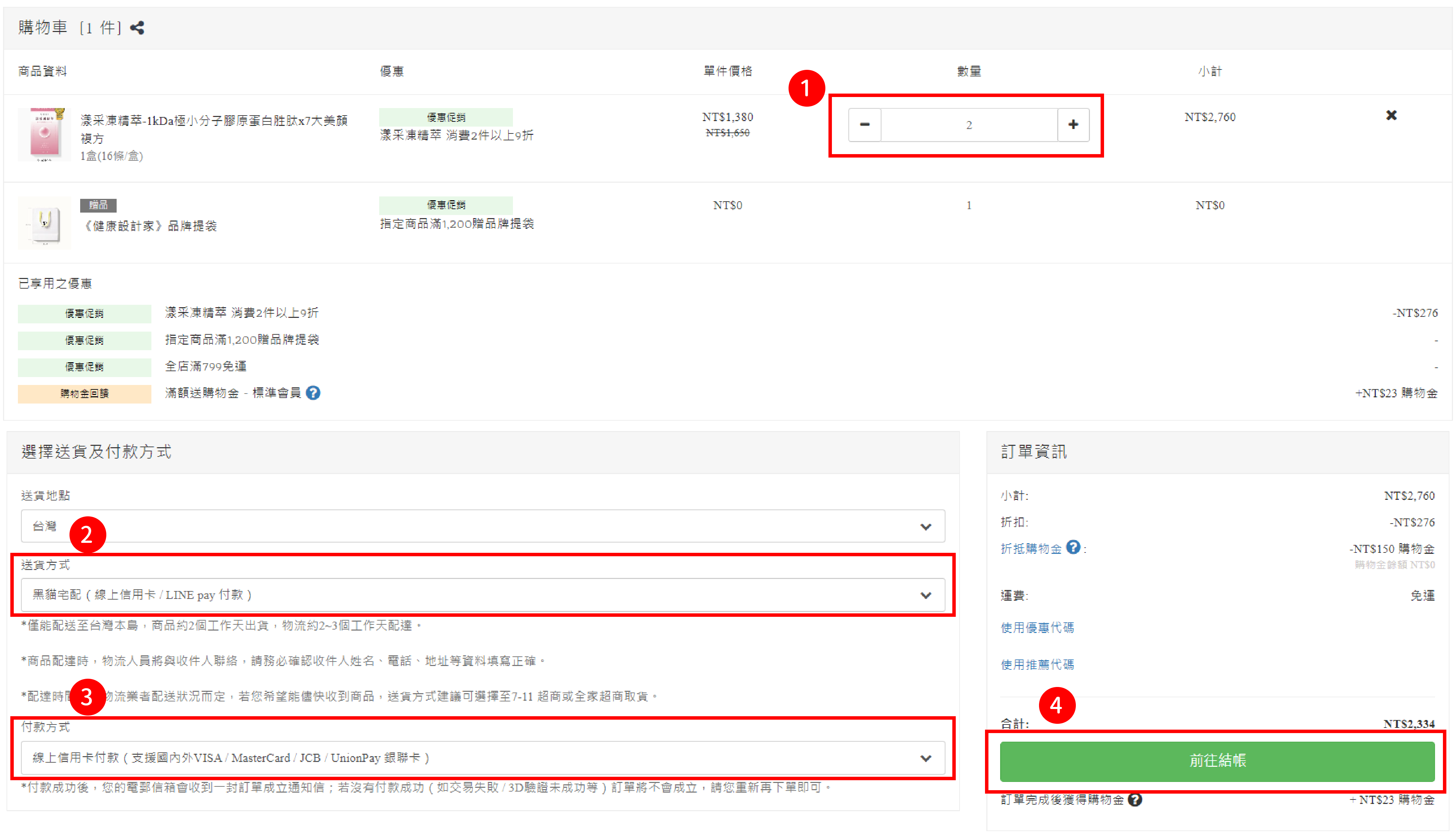 3. 前往「訂單結帳」頁面