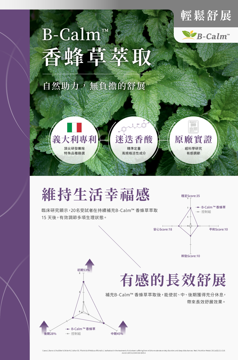 ⊙ 輕鬆舒展|105mg B-Calm義大利香蜂草,無負擔地舒展