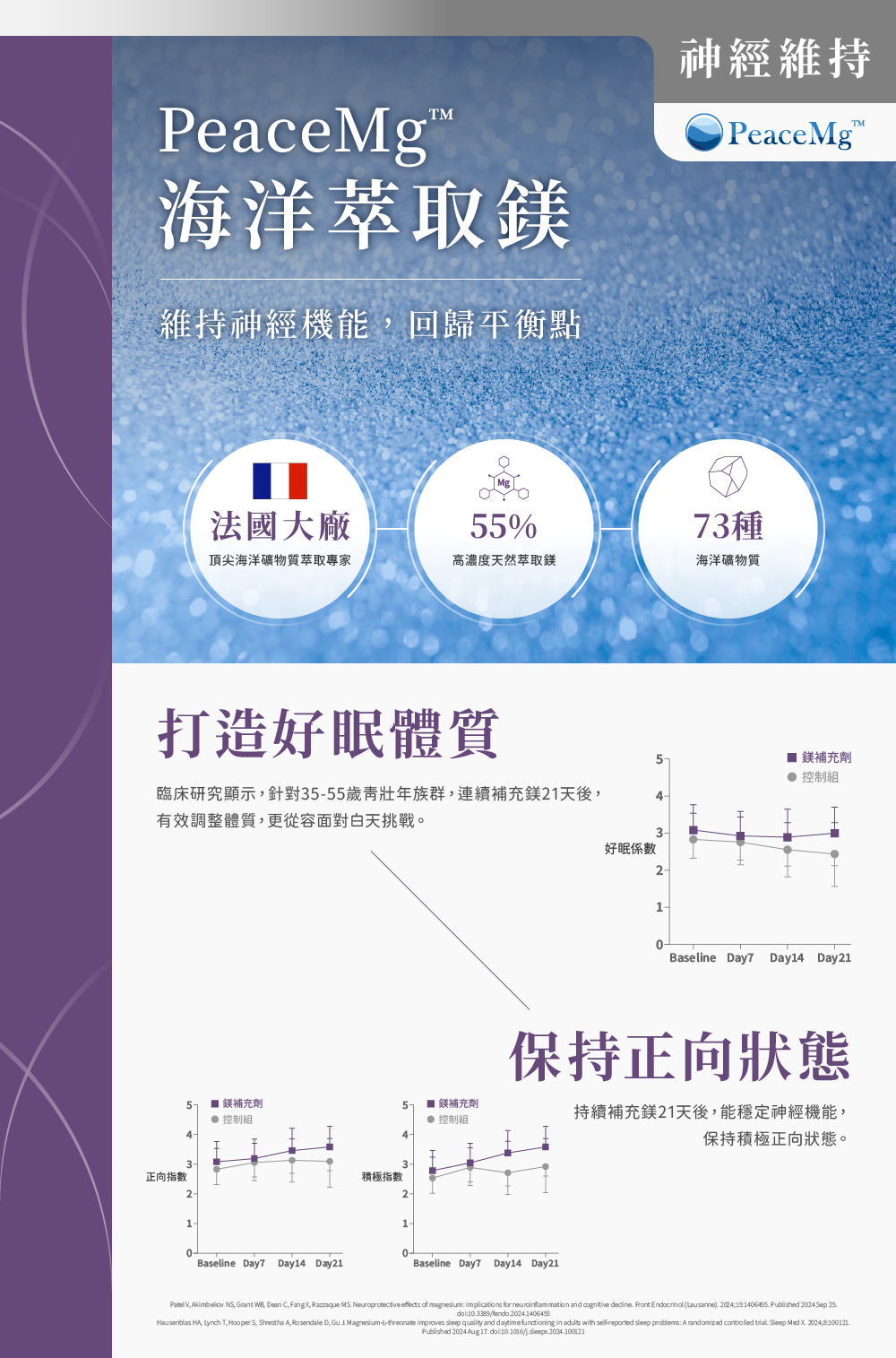 ⊙ 神經維持|165mg PeaceMg法國海洋萃取鎂,打造好眠體質