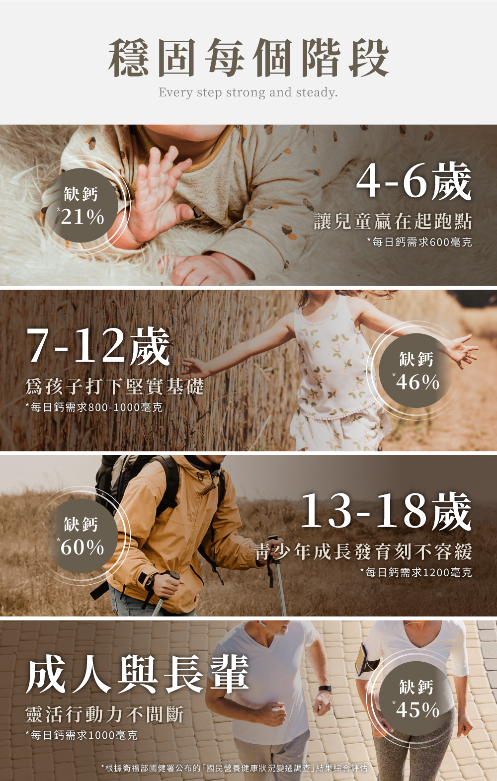 ⊙ 全齡補給|100%全素可食,業界巔峰鈣量,滿足各族群需求
