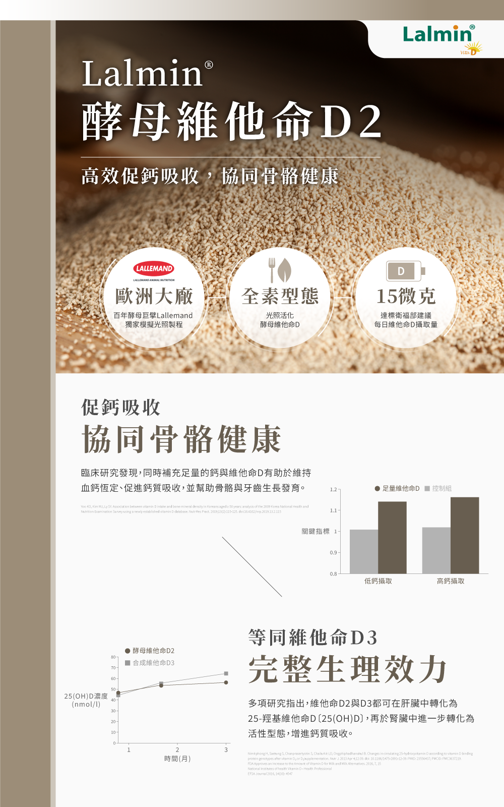 ⊙ 促鈣吸收|Lalmin 酵母維他命D2 75mg
