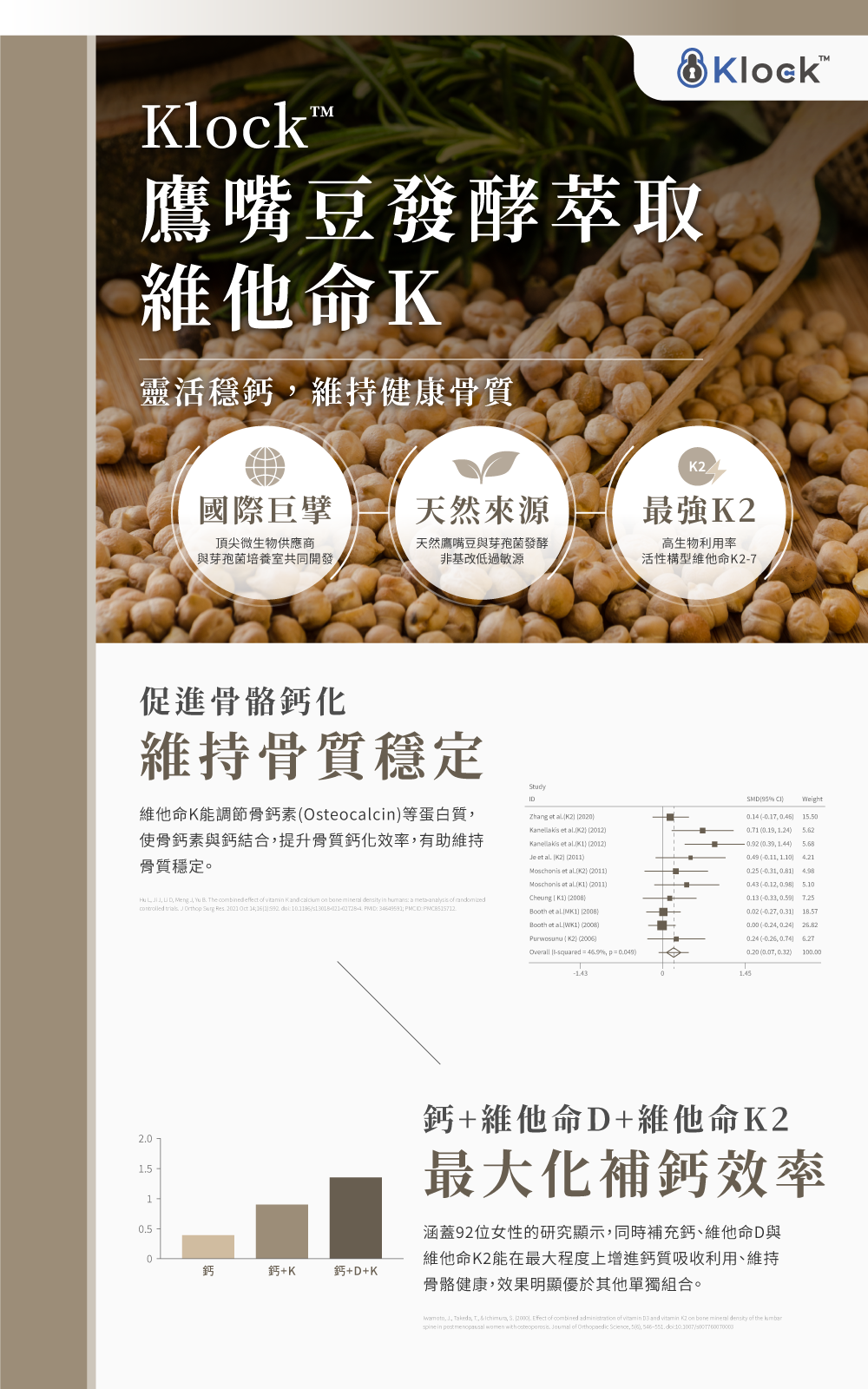⊙ 骨質維持|Klock 鷹嘴豆維他命K2 20mg