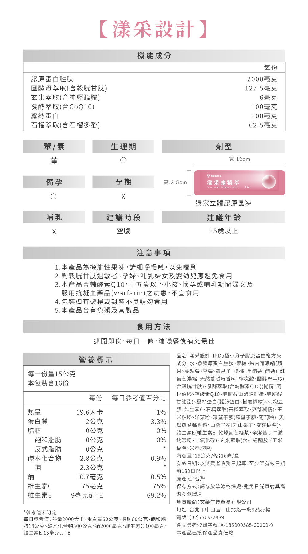 「漾采設計」含有小分子膠原蛋白胜肽,為葷食產品。