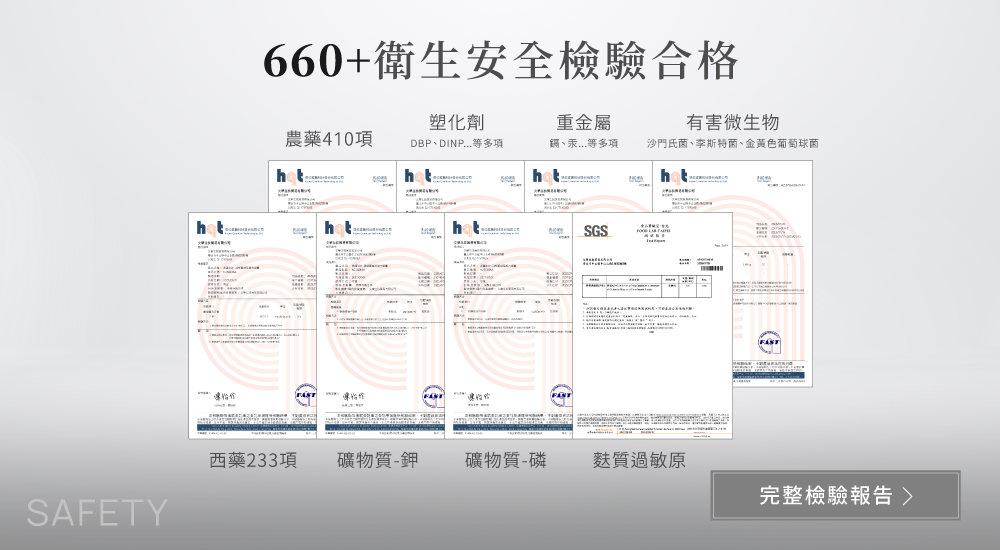 ⊙ 品質保證|SGS等第三方檢驗機構超過660項以上檢驗合格