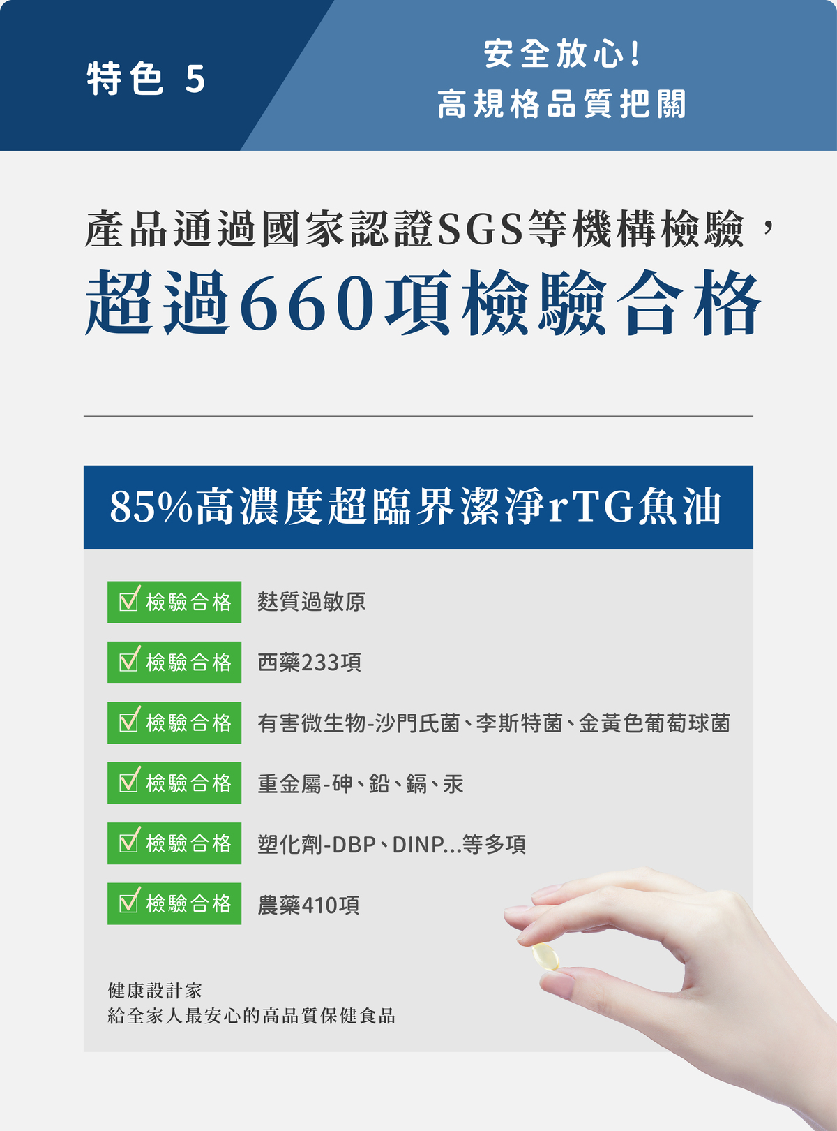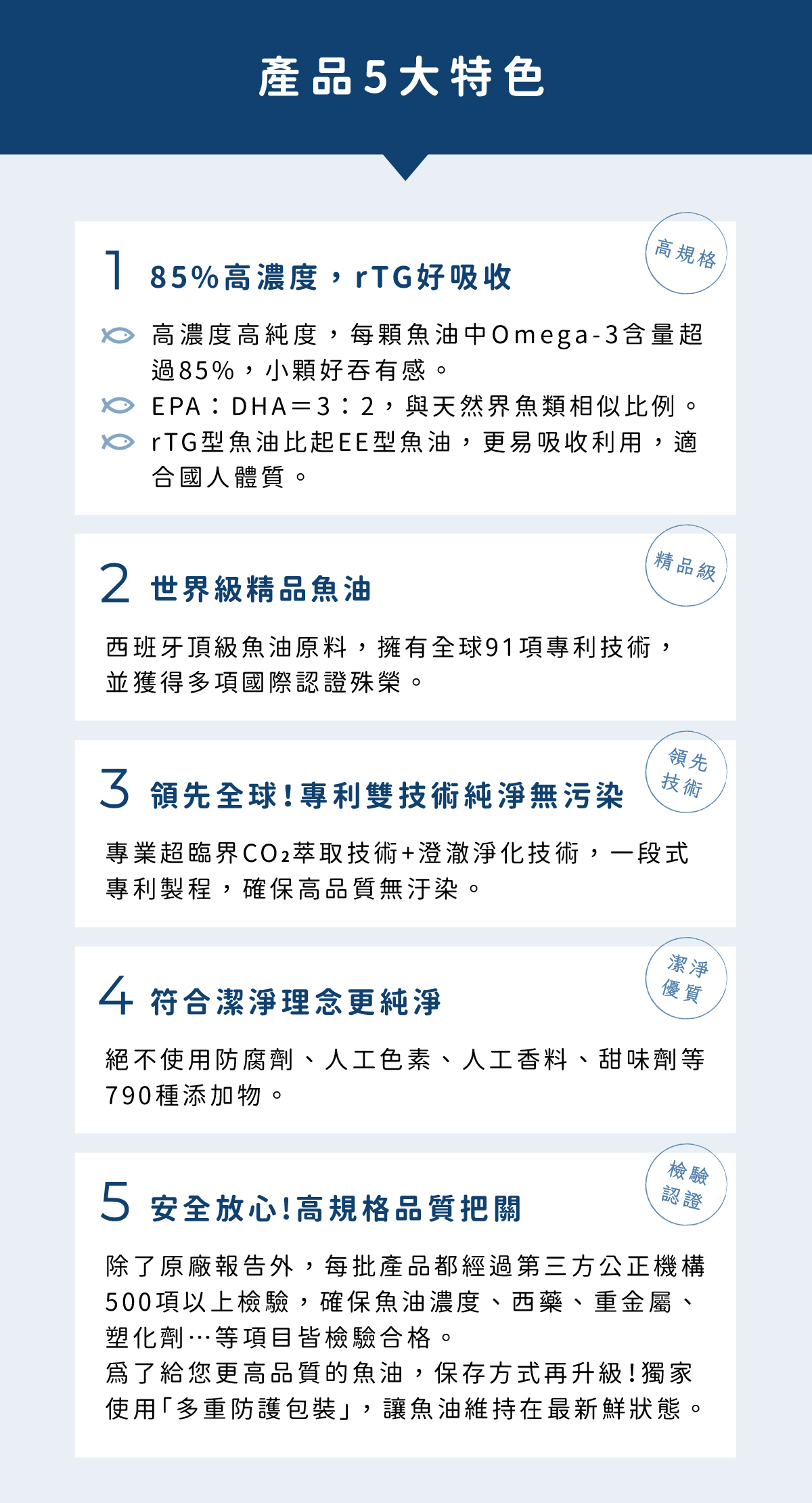 ⊙85%高濃度|Omega-3濃度超過85%,小顆好吞食