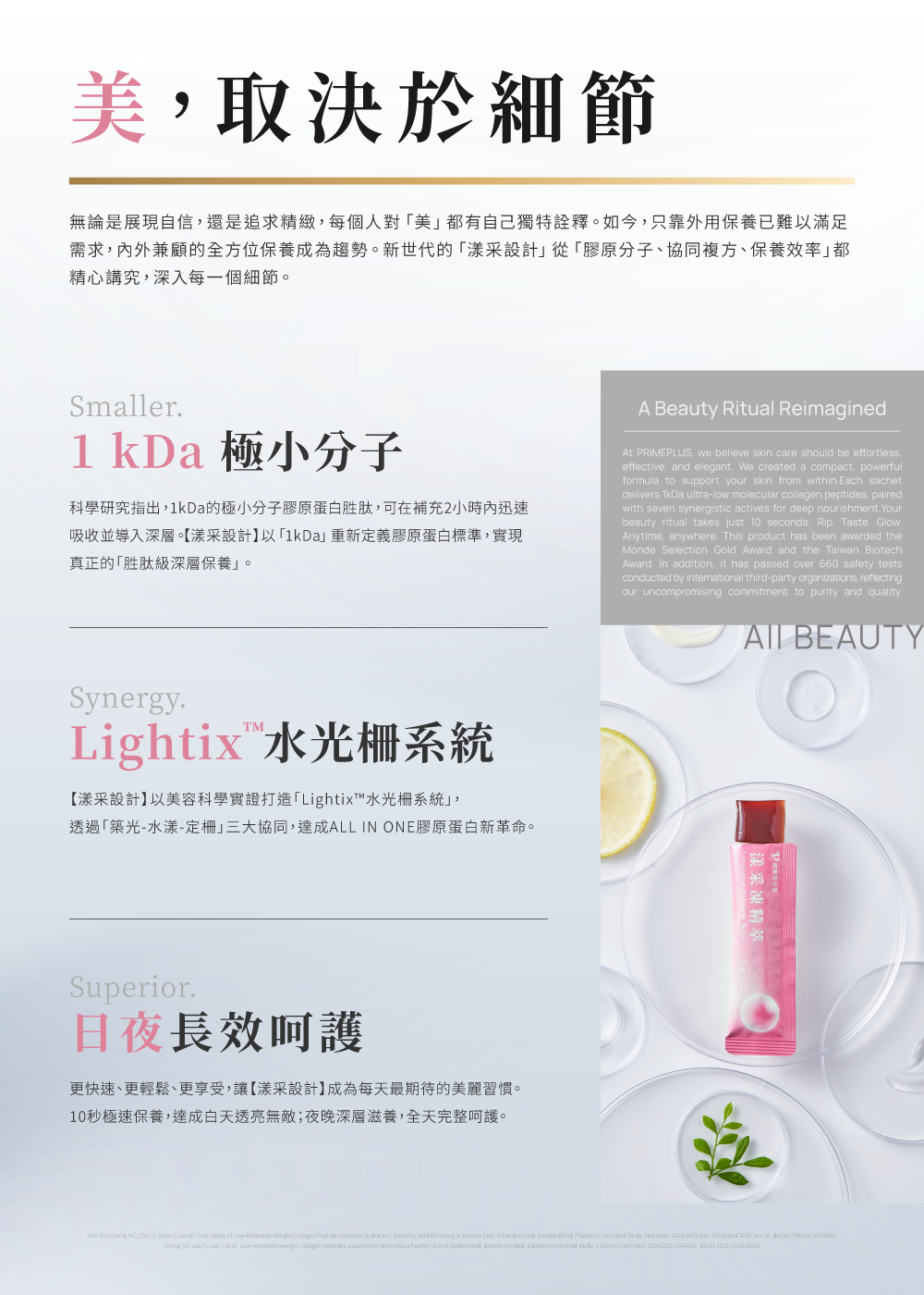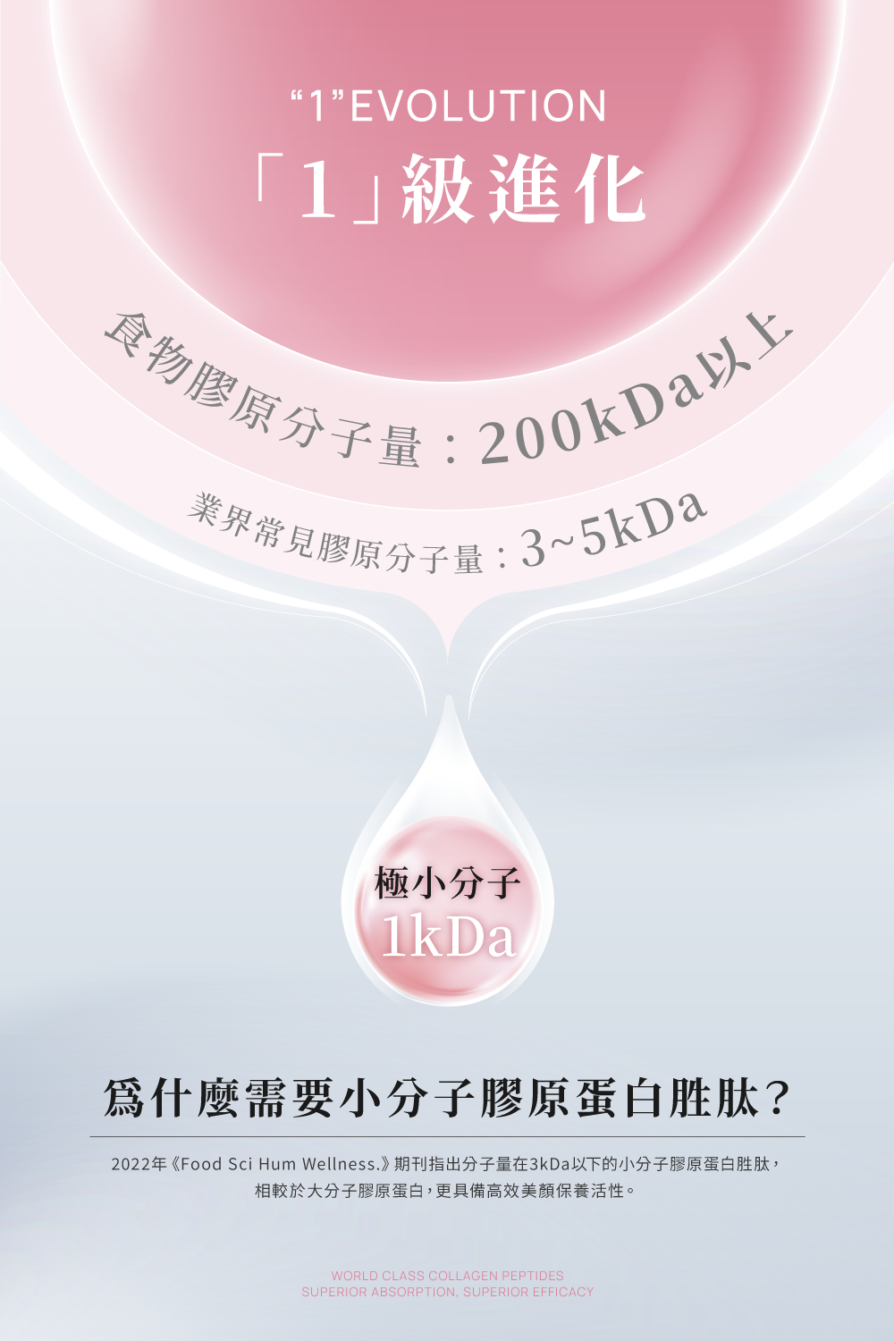 ⊙ 1級進化|1kDa極小分子膠原蛋白胜肽,直達深層保養