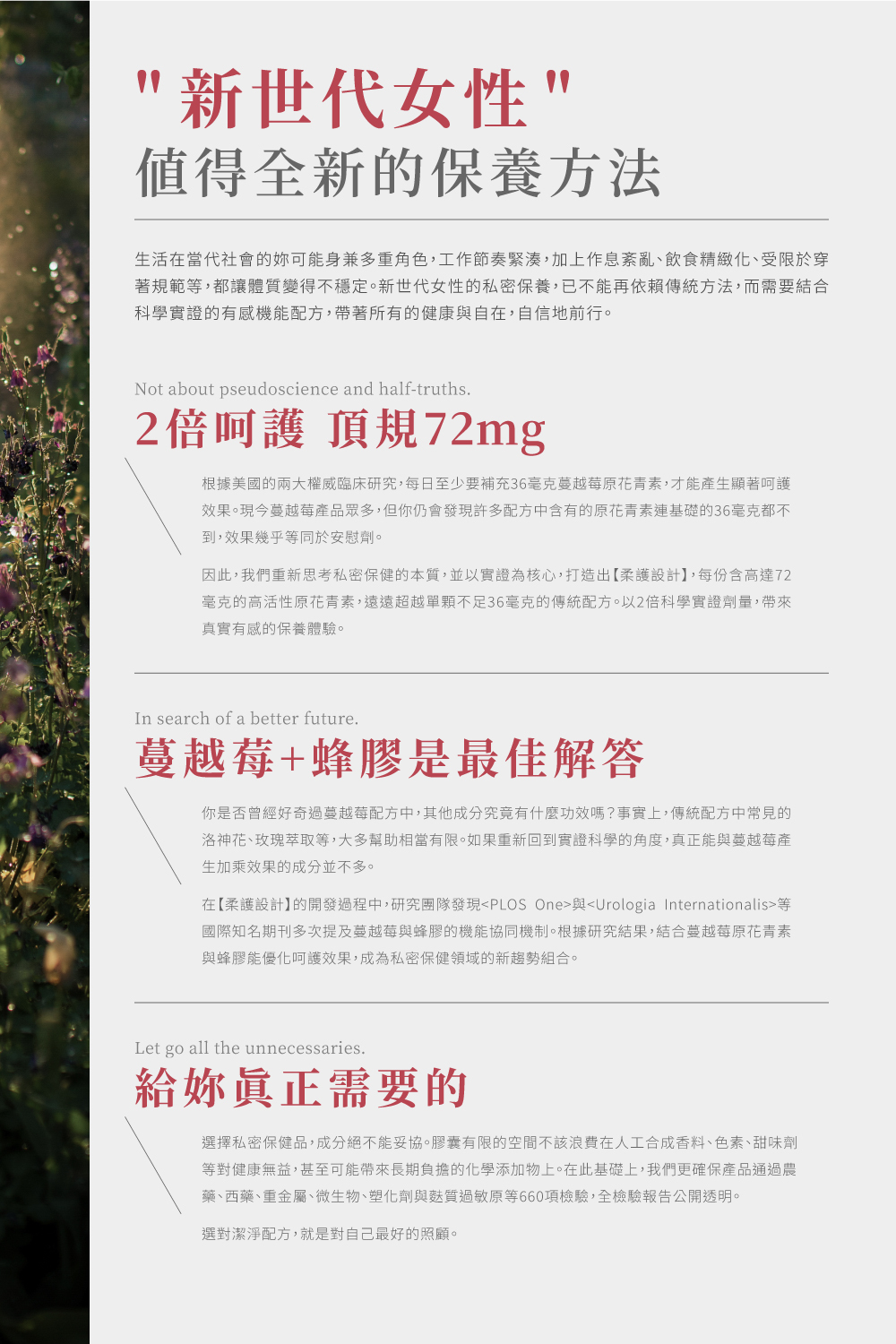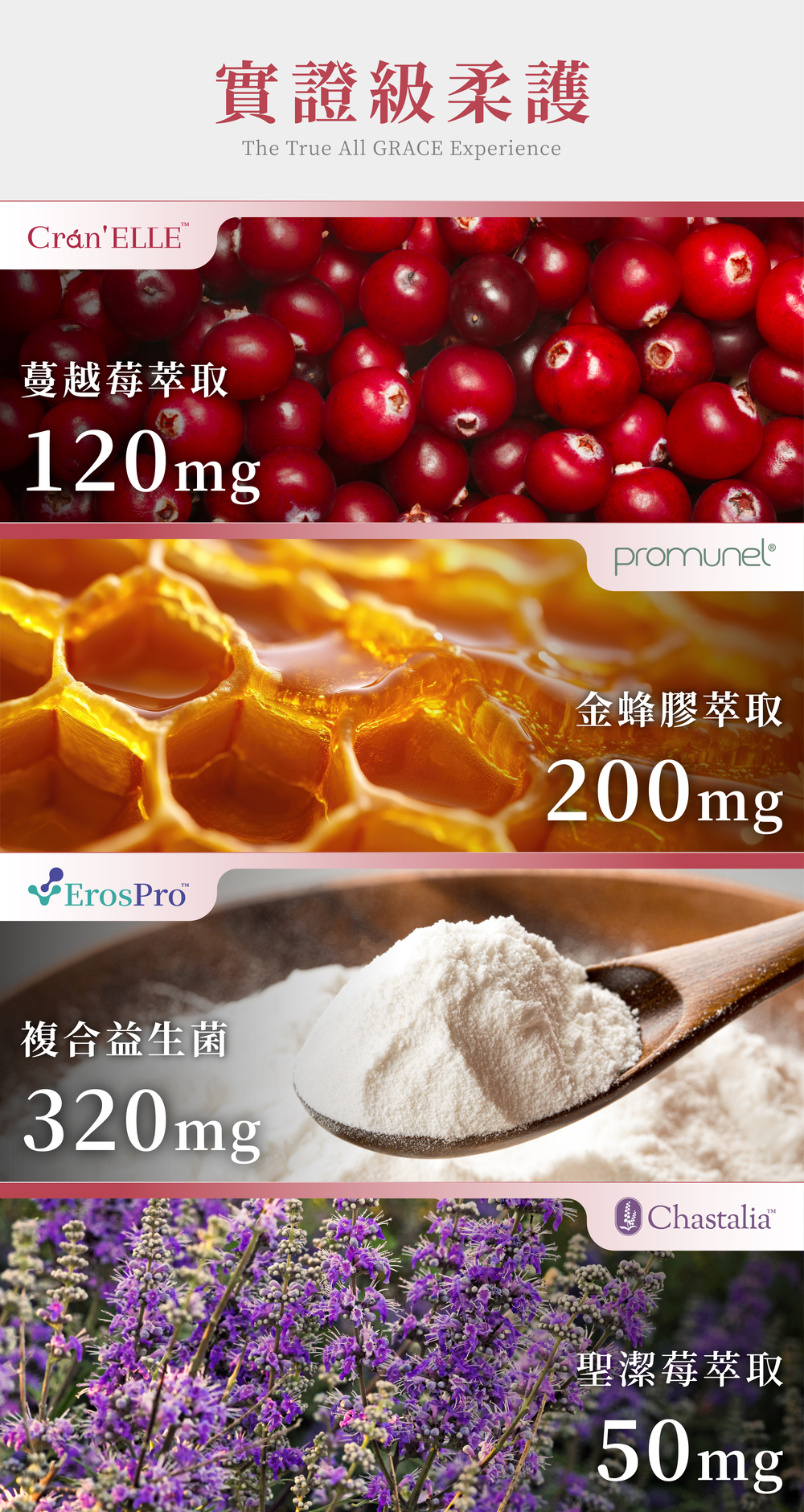 ⊙ 4大複方|蔓越莓原花青素x金蜂膠萃取x複合私密益生菌x聖潔莓萃取