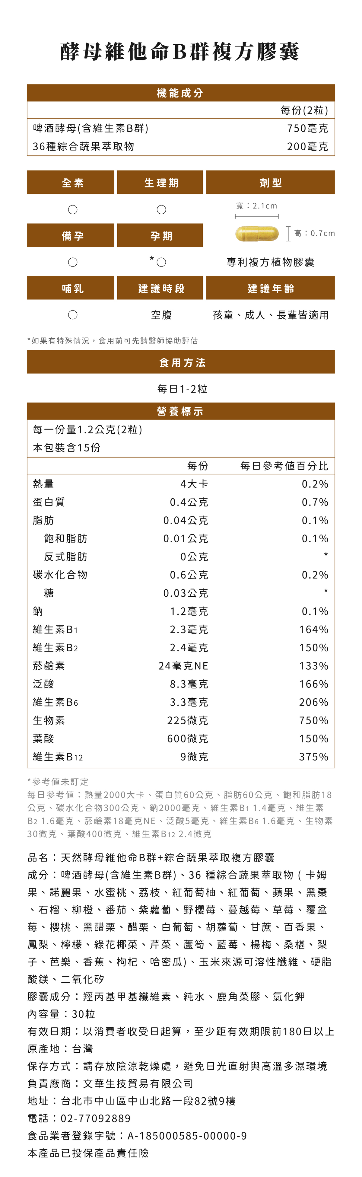 ⊙劑量充足|一份即可補充每日所需維他命B群達100%